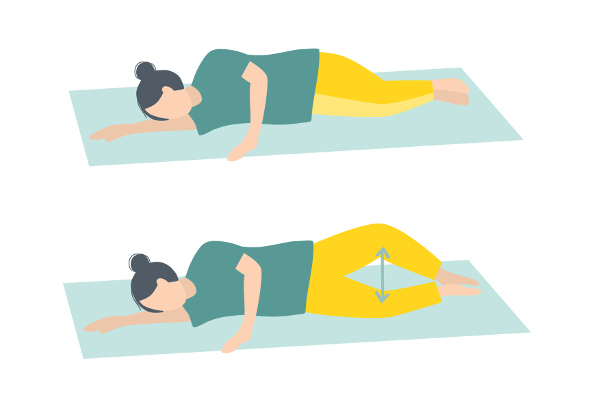 Докато сте още в легнало положение, се обърнете настрани. Свийте леко краката си и ги поставете един върху друг.